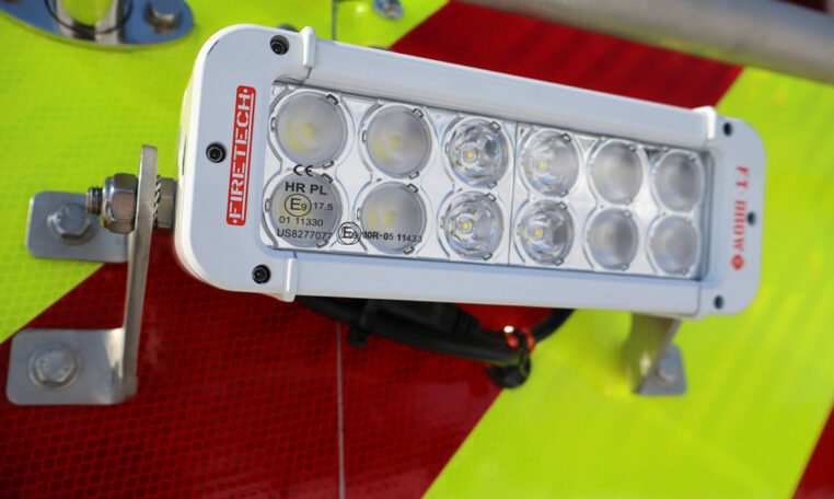 - Two (2) FireTech HiViz 8″ LED Scene Light Bars, Rear One (1) Each Side