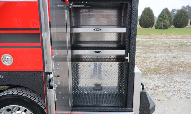 - Two (2) Aluminum Treadplate Hose Trays One (1) Each Side Above the Compartments