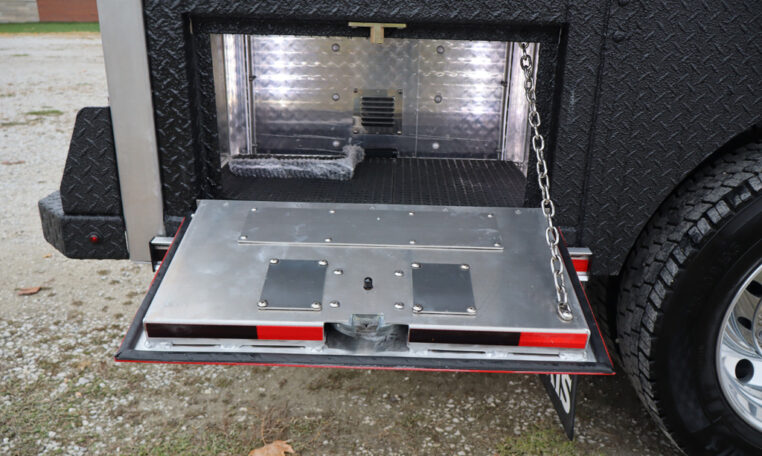 - Two (2) Compartments Each Side with Aluminum Pan Doors